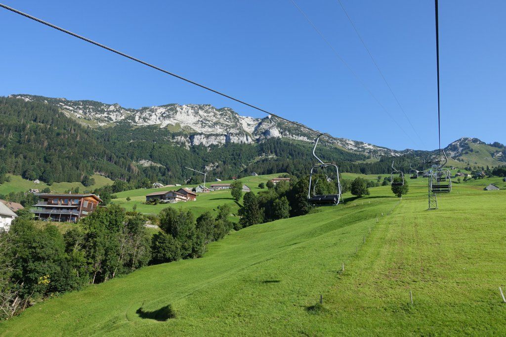 Mit dem Sessellift zur Bergstation Mattstogg. Start um 09:40 Uhr
