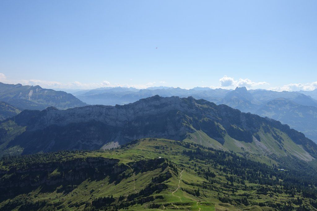 Blick in Richtung Mürtschenstock, Glarneralpen mit Tödi und Glärnisch