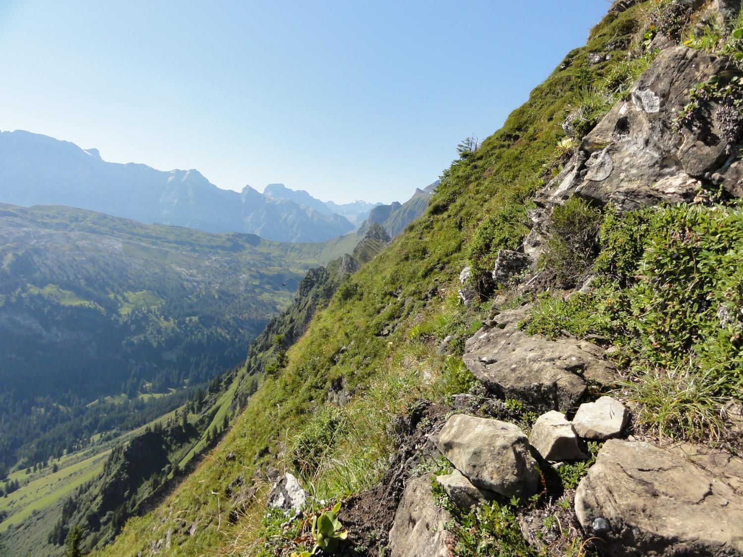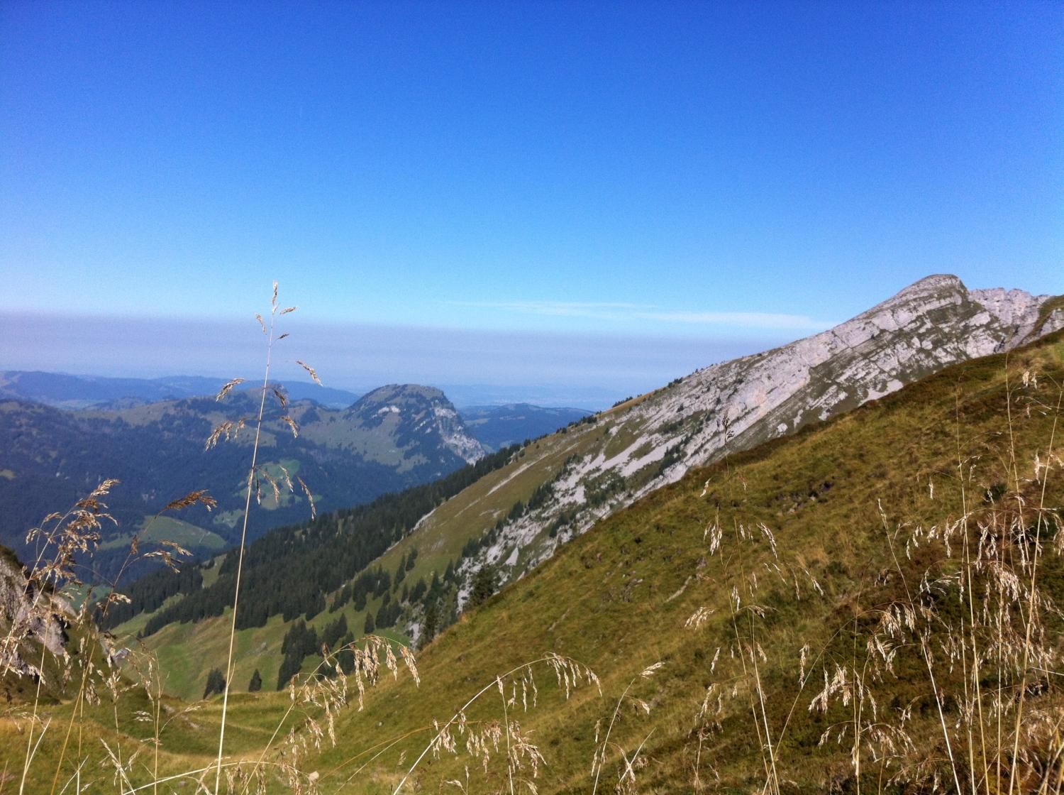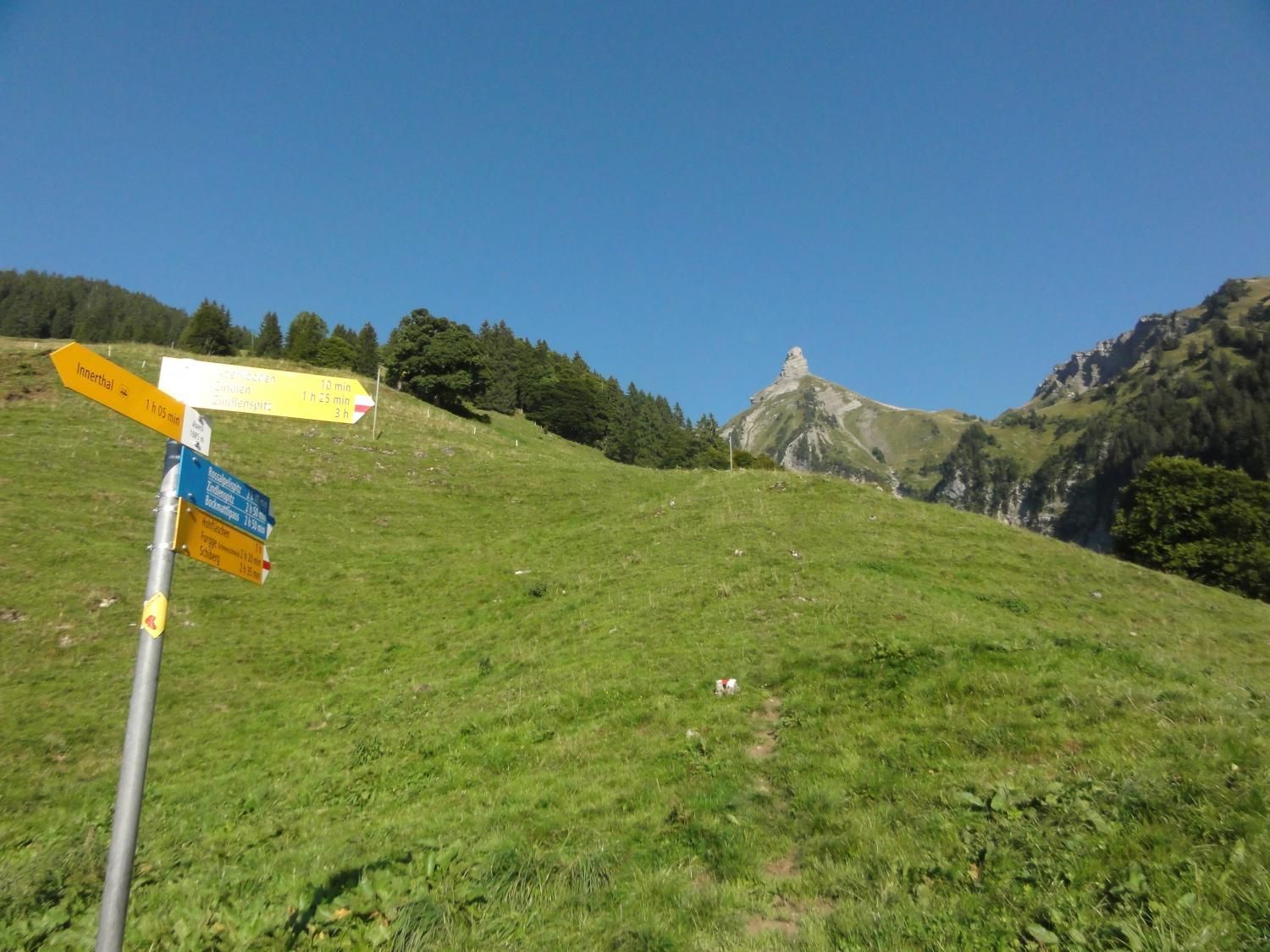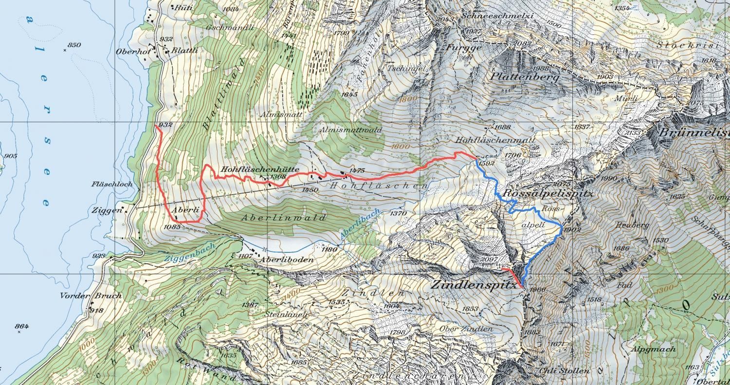 Für den Abstieg über Alp Zindlen und Aberliboden sind 2 ½ Stunden einzuplanen. Beim Abstieg zur Hohfläsch haben wir bemerkt, dass auf der Alp Zindlen (Pkt. 1535) eine Fahne weht was bedeutet, dass es etwas zu verkaufen gibt!