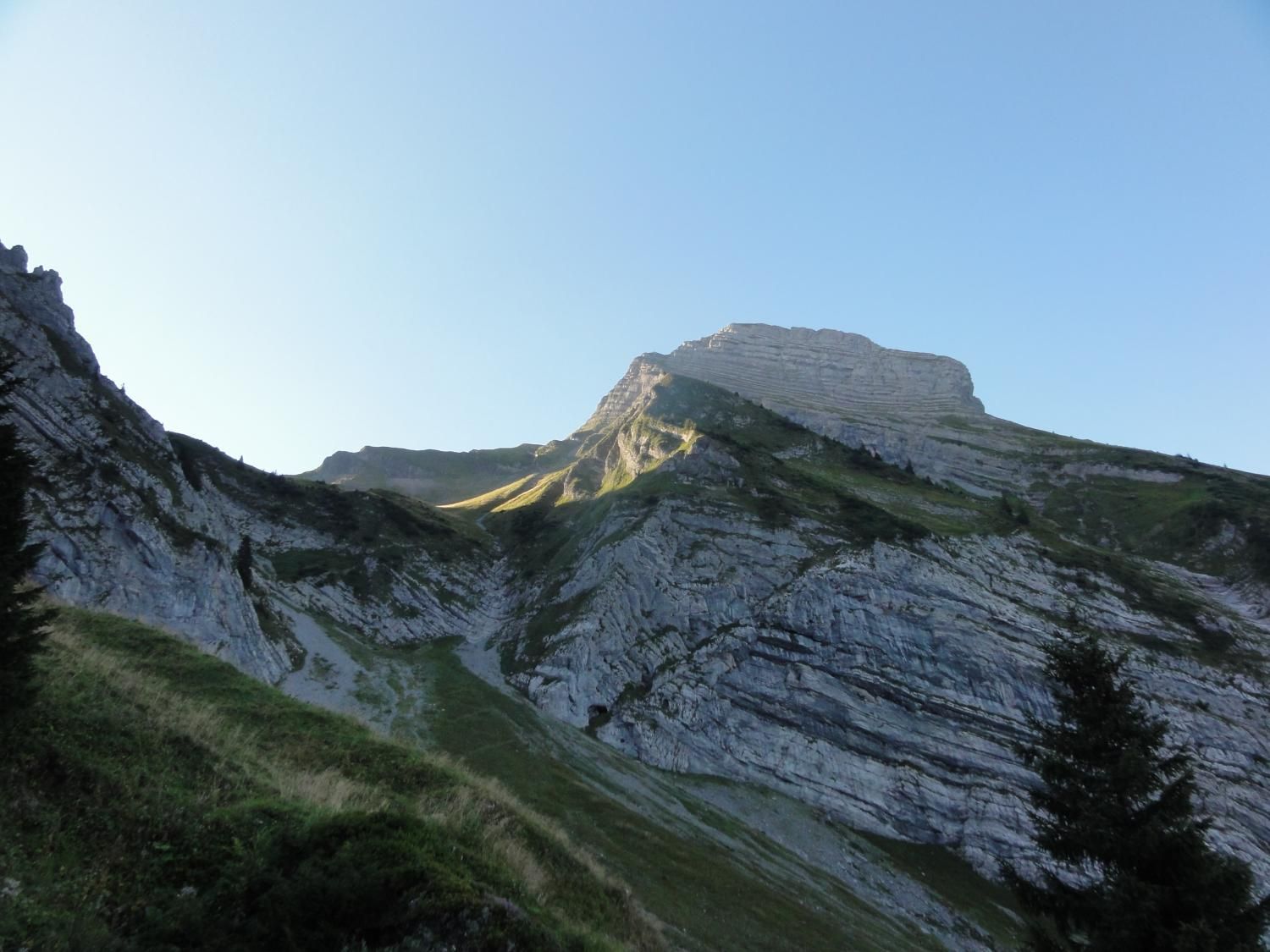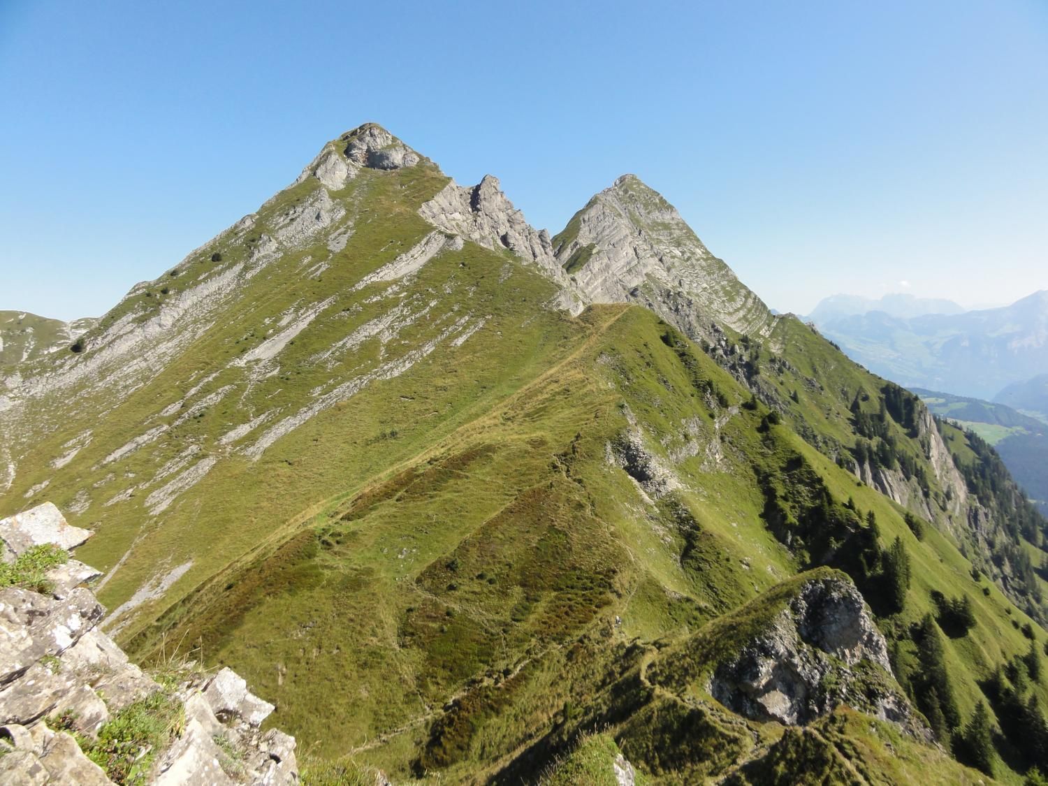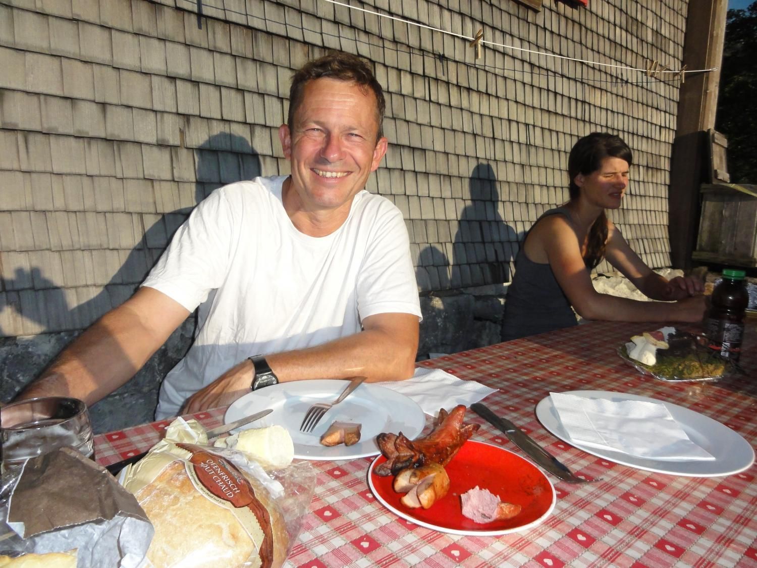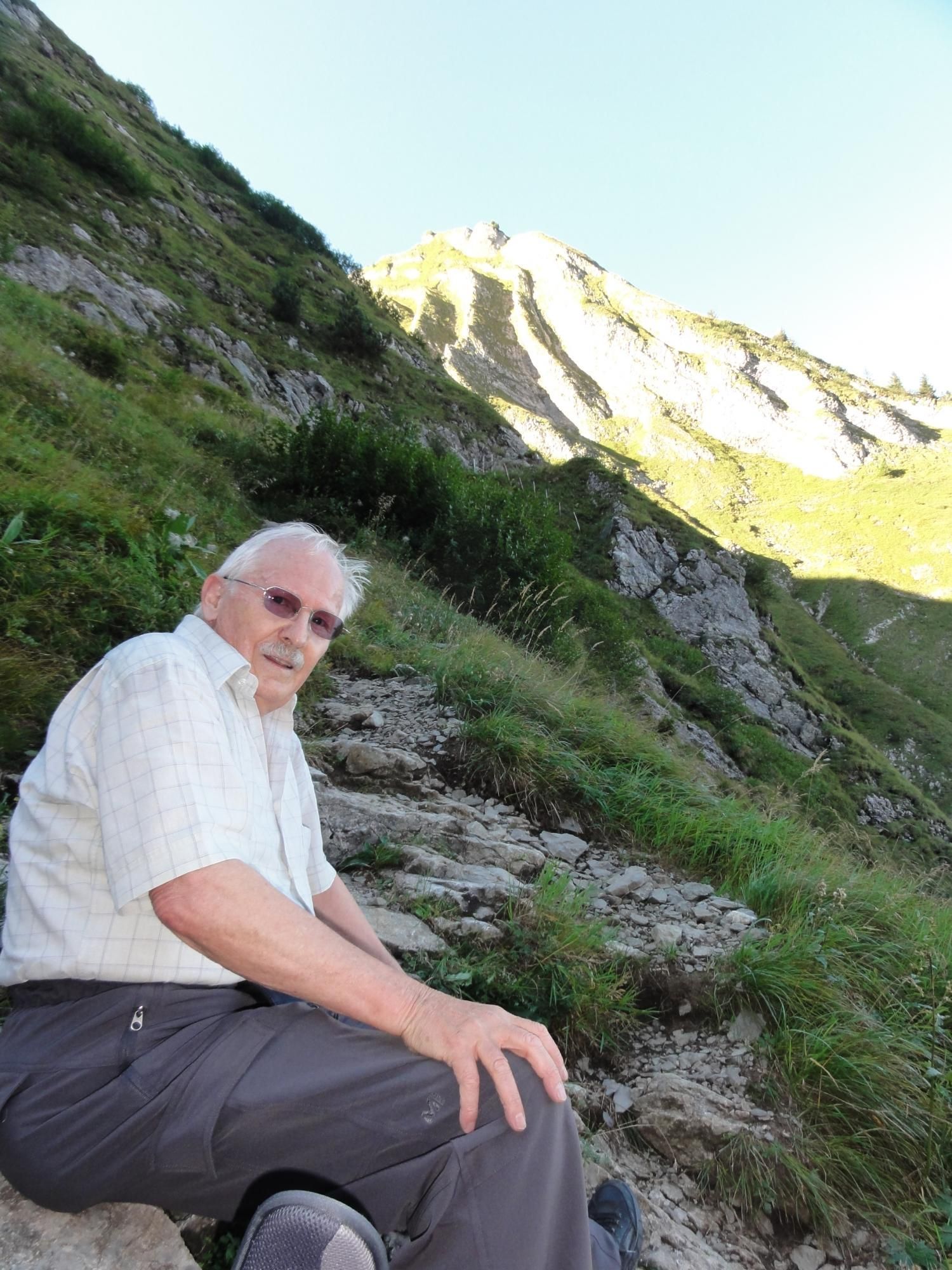 Für die Zindlenspitzbesteigung möglichst wenig Gewicht mitnehmen, dafür genügend Flüssigkeit. Jedes Kilogramm weniger erleichtert den Aufstieg. Das habe ich gespürt und auch wegen des beginnenden Muskelkrampfs den Aufstieg zum Gipfel am Punkt 1902 abgebrochen und Dani allein, bzw. in Begleitung mit einem Ehepar, ziehen lassen. Der Aufstieg zum Gipfel ist ab Hohfläsch gut in 2 ½ Stunden zu machen. Der Weg am Grat und zum Gipfel ist mit Ketten sehr gut abgesichert.