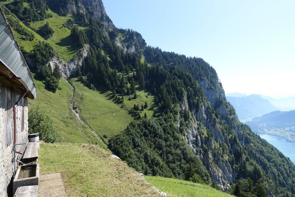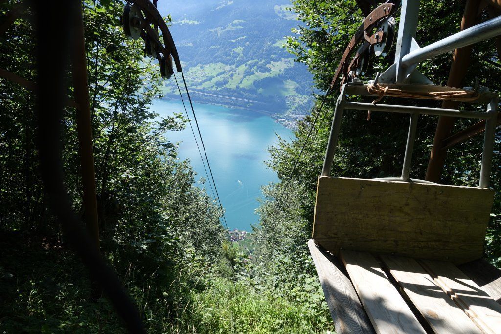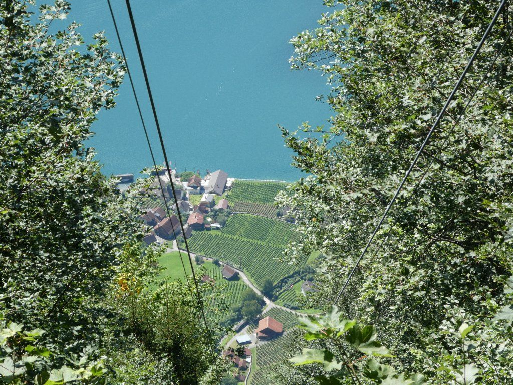 11:30 Uhr: 1330 m.ü.M. Bergstation der Transportbahn. 900 m tiefer liegt Quinten!